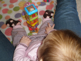 Anna had her four-month checkup today. Developmentally all is well ... yeah! She has not been gaining the kind of weight the doctor would like to see ... Anna still only weighs 13 pounds (nowhere near doubling her birth weight yet) and is only 24 inches long. Cereal is in the near future to help put on some chubs!